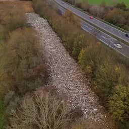 Video | Drone filmt enorme illegale afvalberg naast Britse snelweg